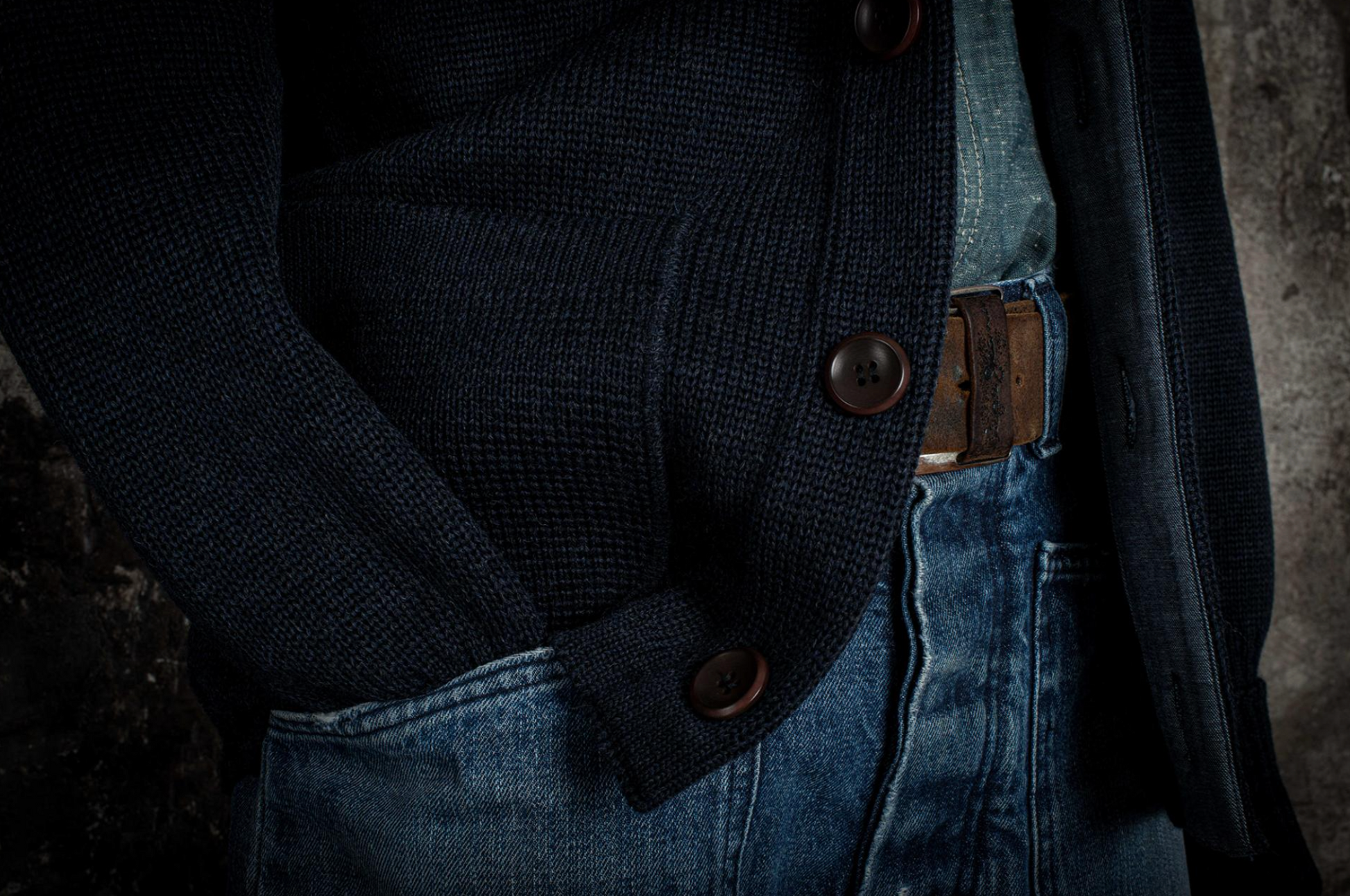 ボタンホール裏地:ヴィンテージコットンシャンブレー生地。