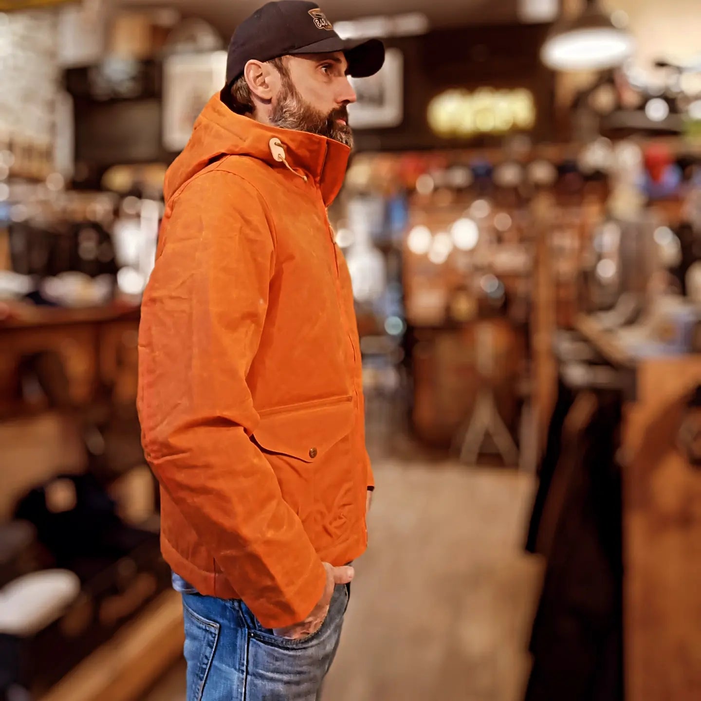スクーターで移動し、ダイナミックな生活を送る人々に特に適した衣服です。 撥水加工のワックスコットン製で、雨に対する優れた保護力があります。