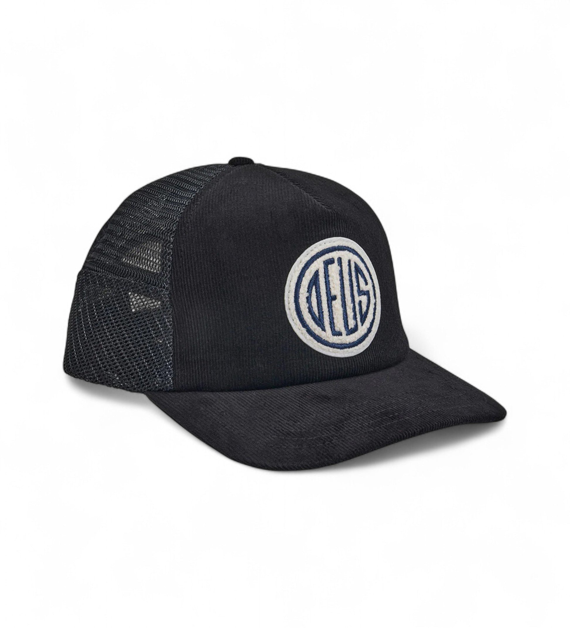 La casquette Pill Trucker de Deus Ex Machina a été fabriquée à partir d'un mélange de velours côtelé doux, avec un bord incurvé, un ajusteur en plastique à l'arrière, un badge logo à l'avant et une étiquette drapeau à l'arrière.