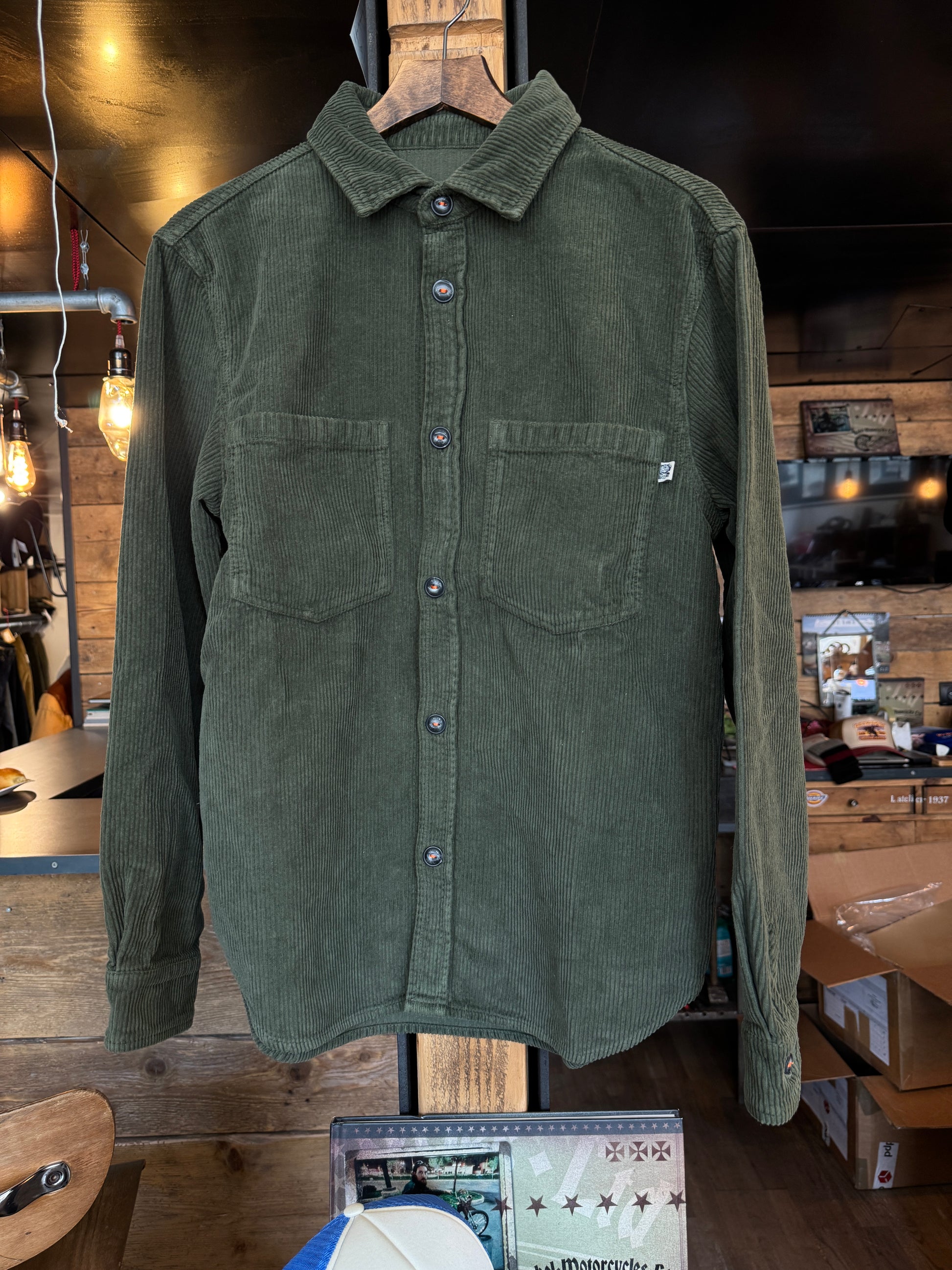 SKULLS MACHINE - Chemise velour kaki foncé